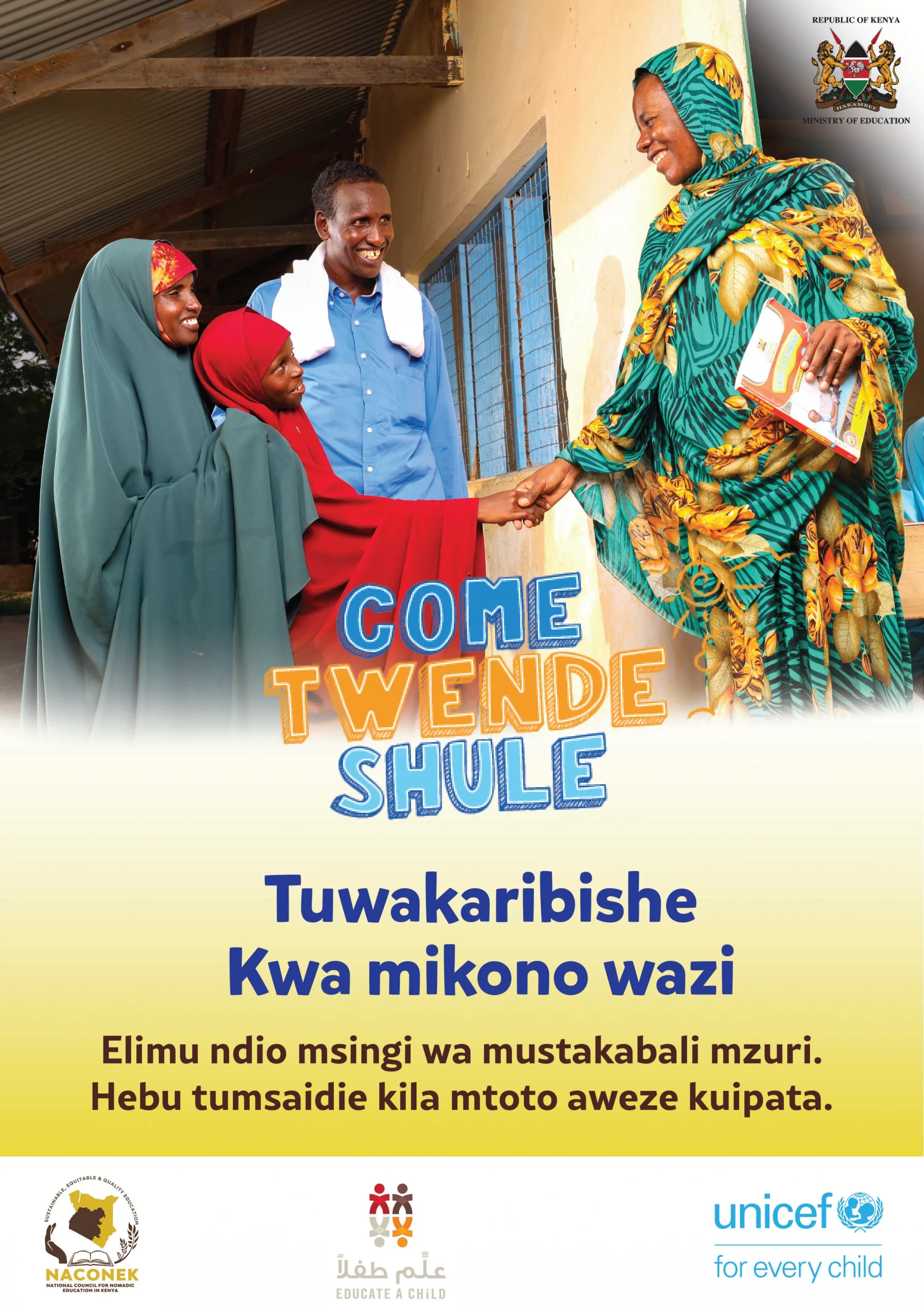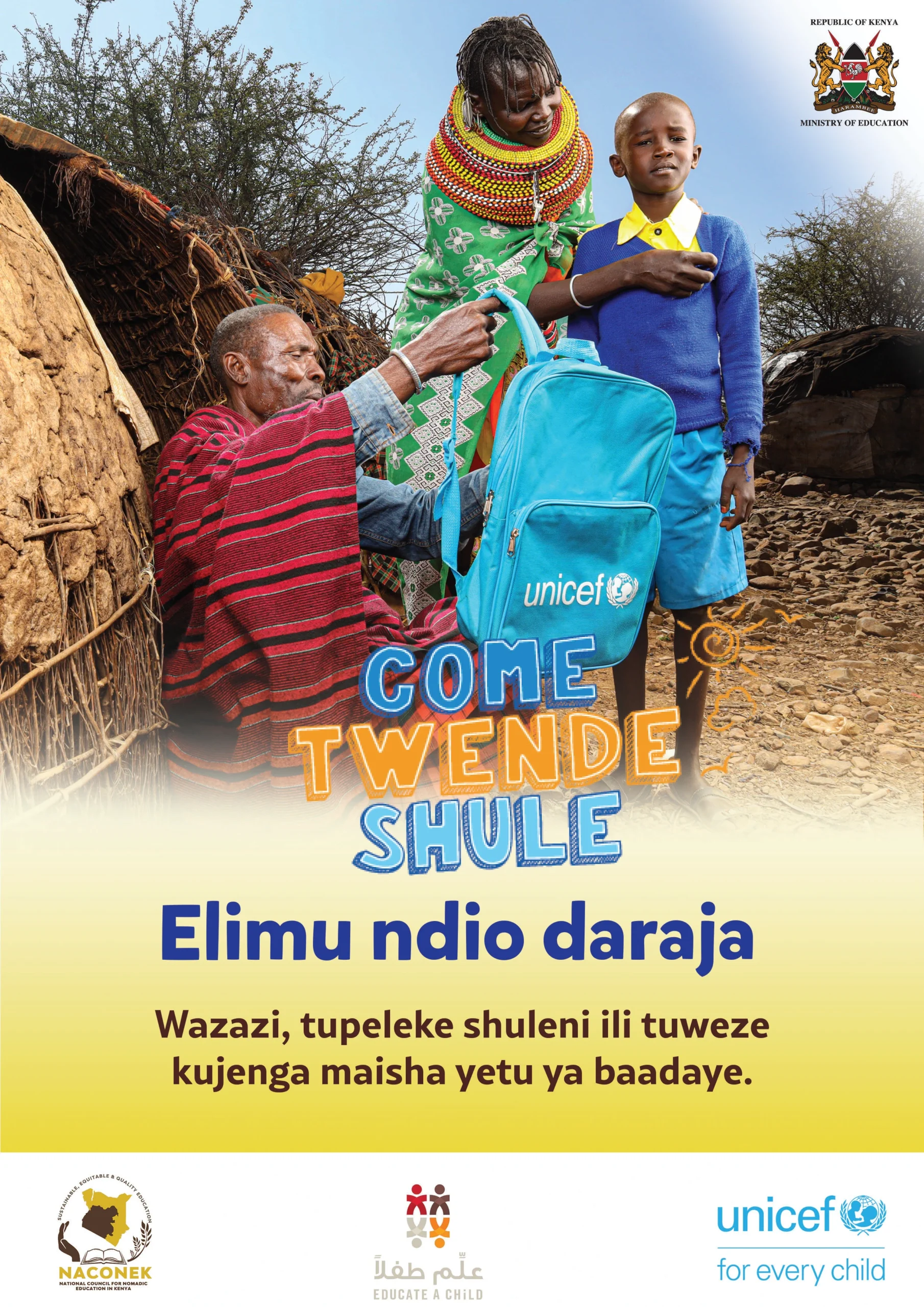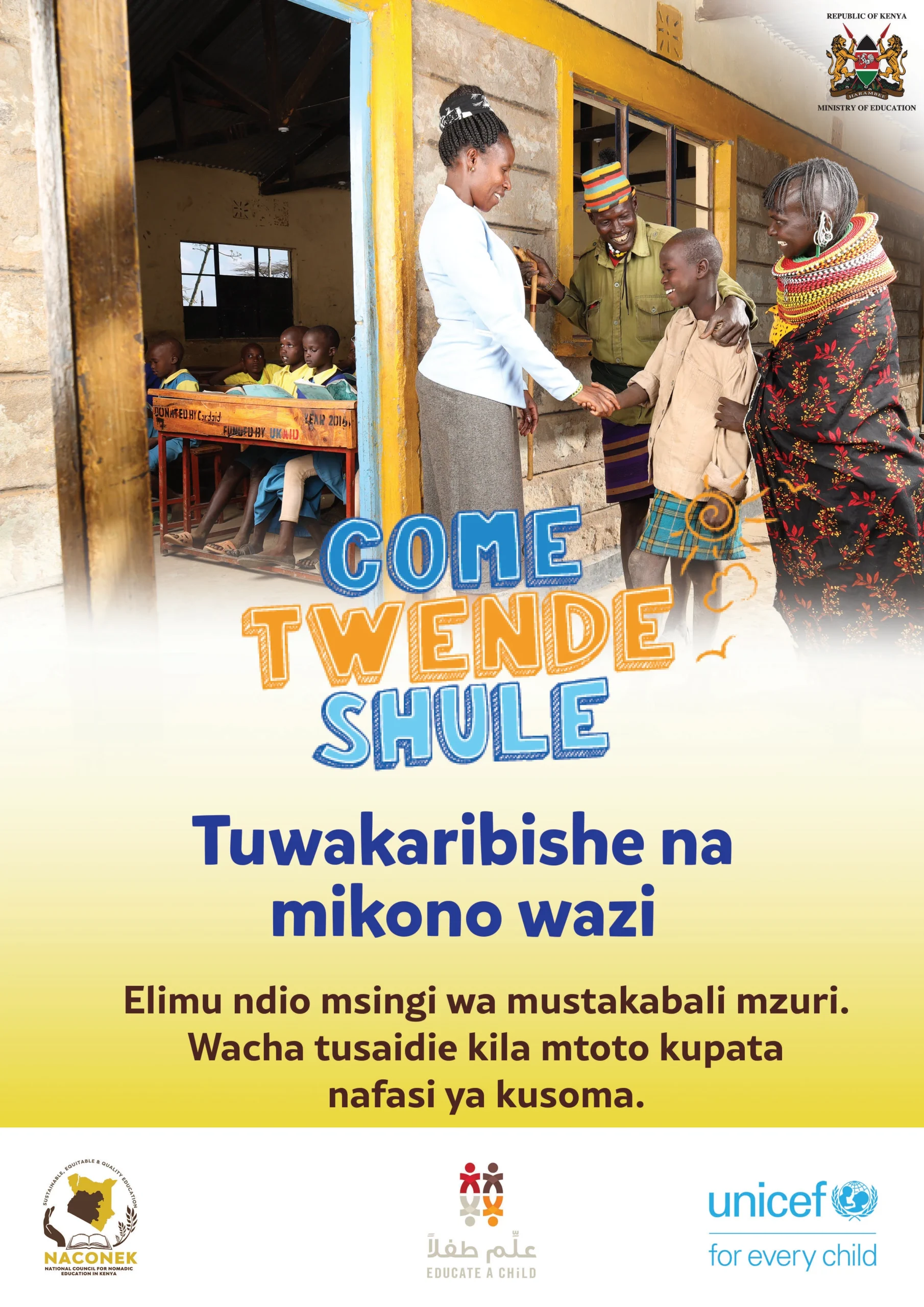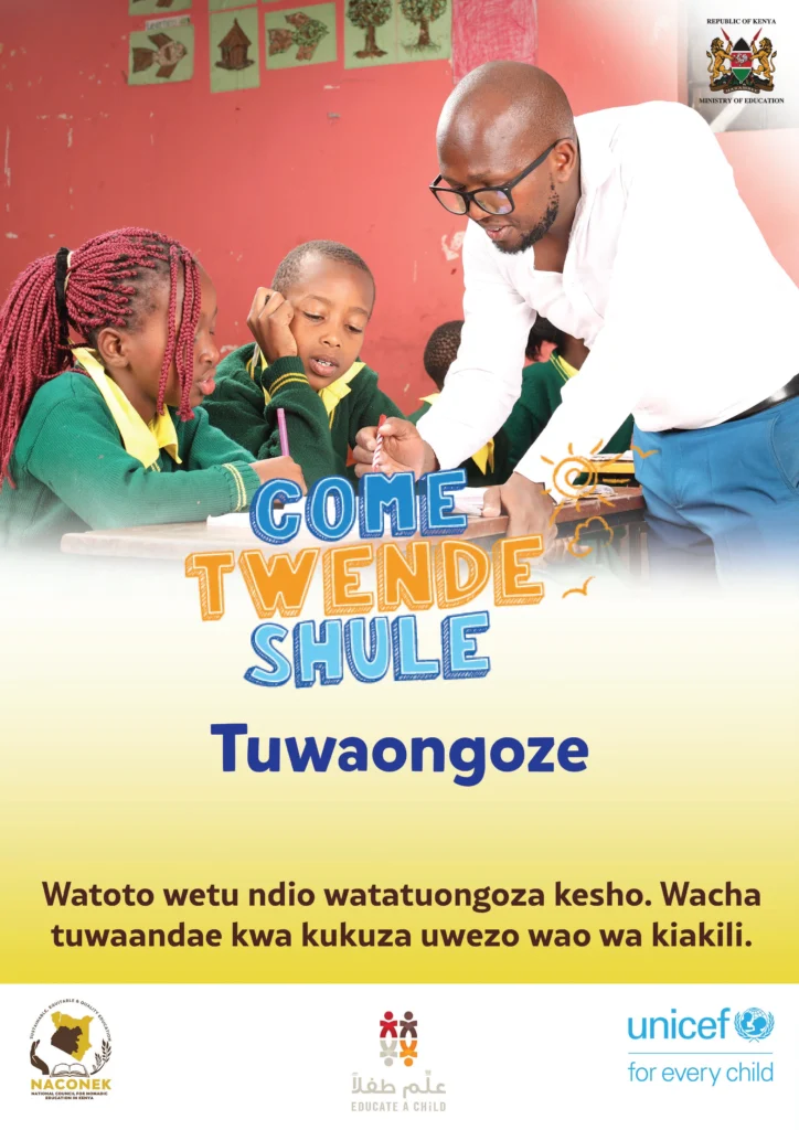UNICEF is supporting the Government of Kenya to bring and retain more children in school, with a focus on 16 priority counties (Baringo, Bungoma, Garissa, Isiolo, Kajiado, Kilifi, Kwale, Mandera, Marsabit, Narok, Samburu, Tana River, Turkana, Wajir and West Pokot, as well as Nairobi informal settlements) that cumulatively account for 90% of Out of School children in Kenya.