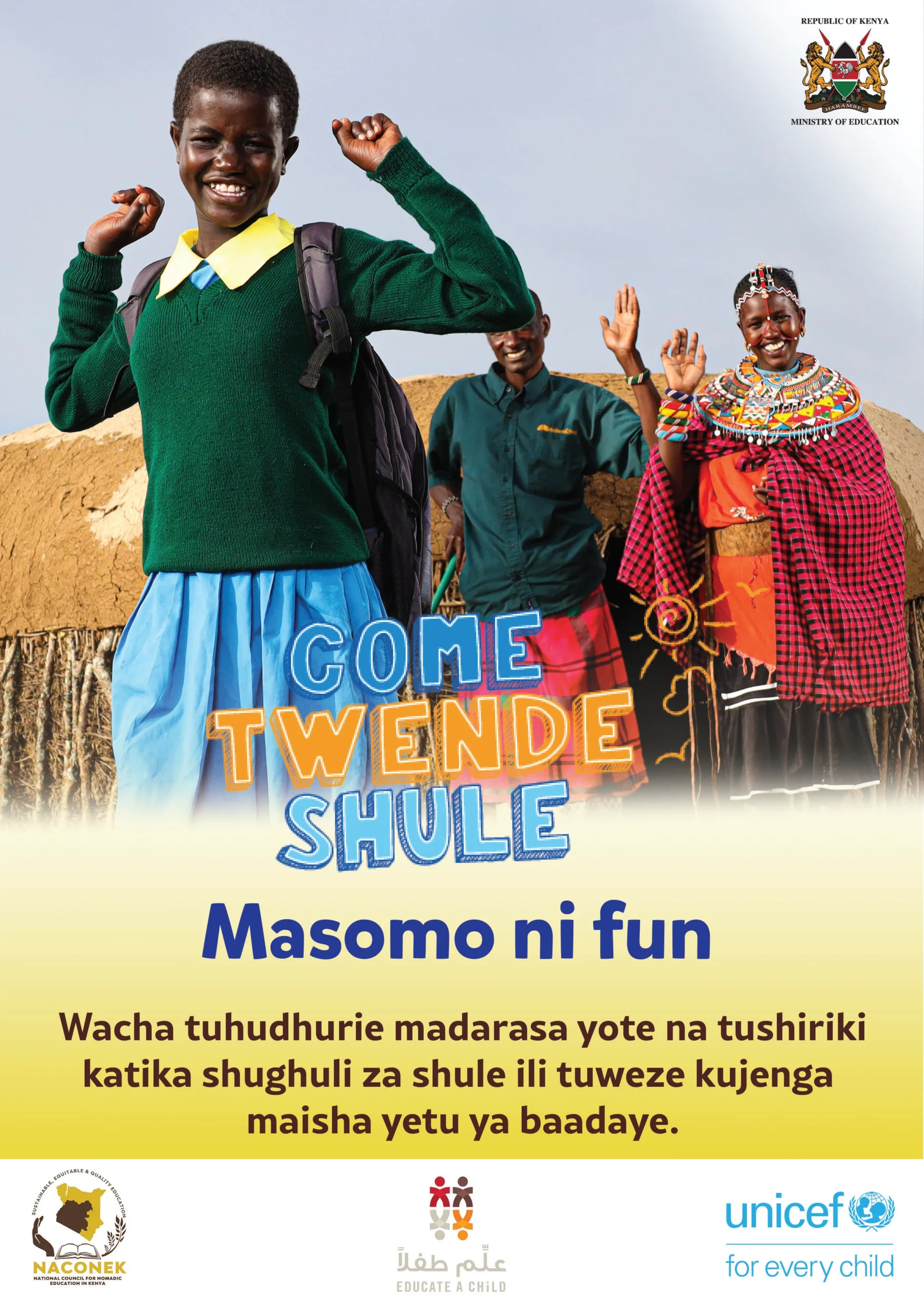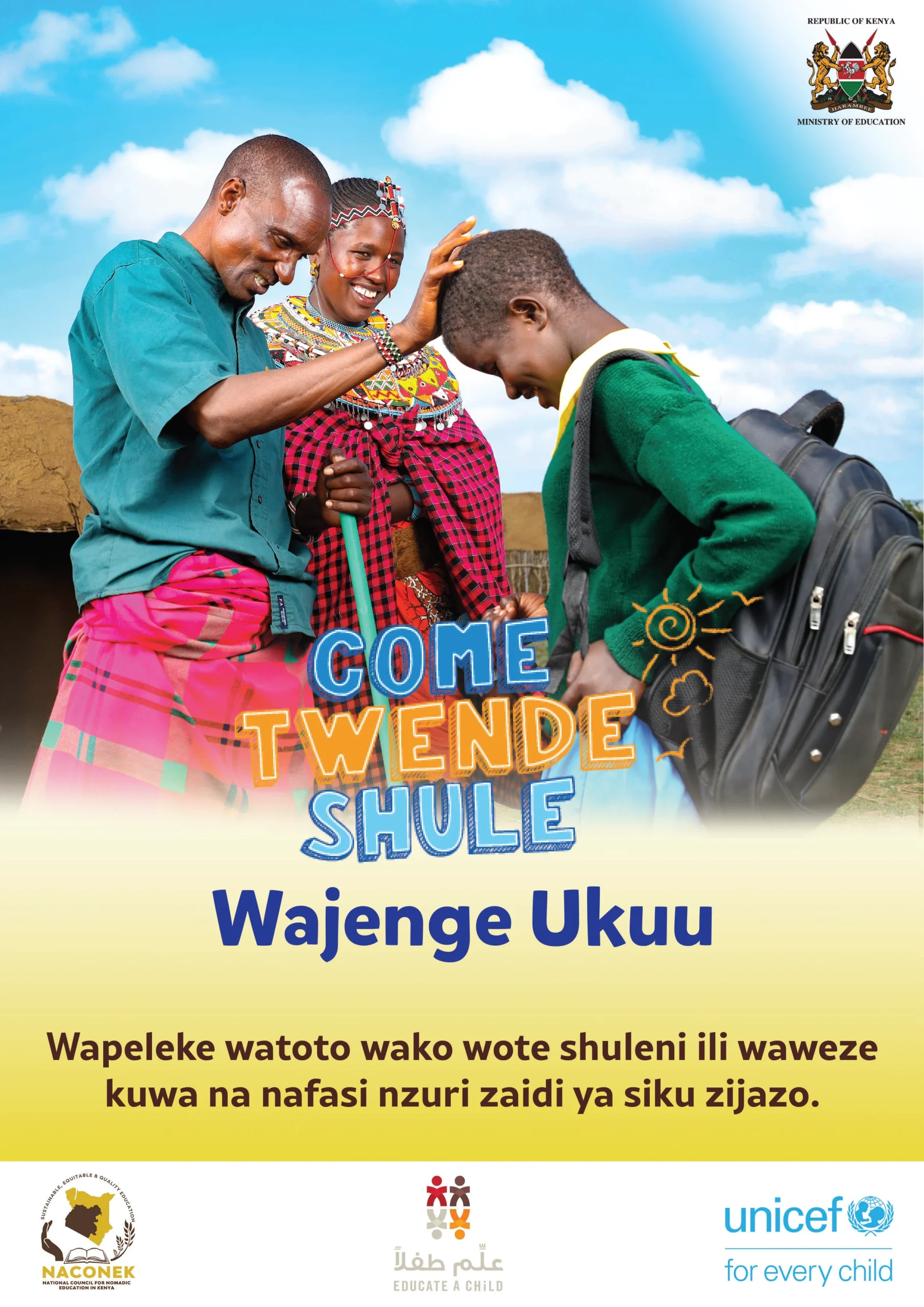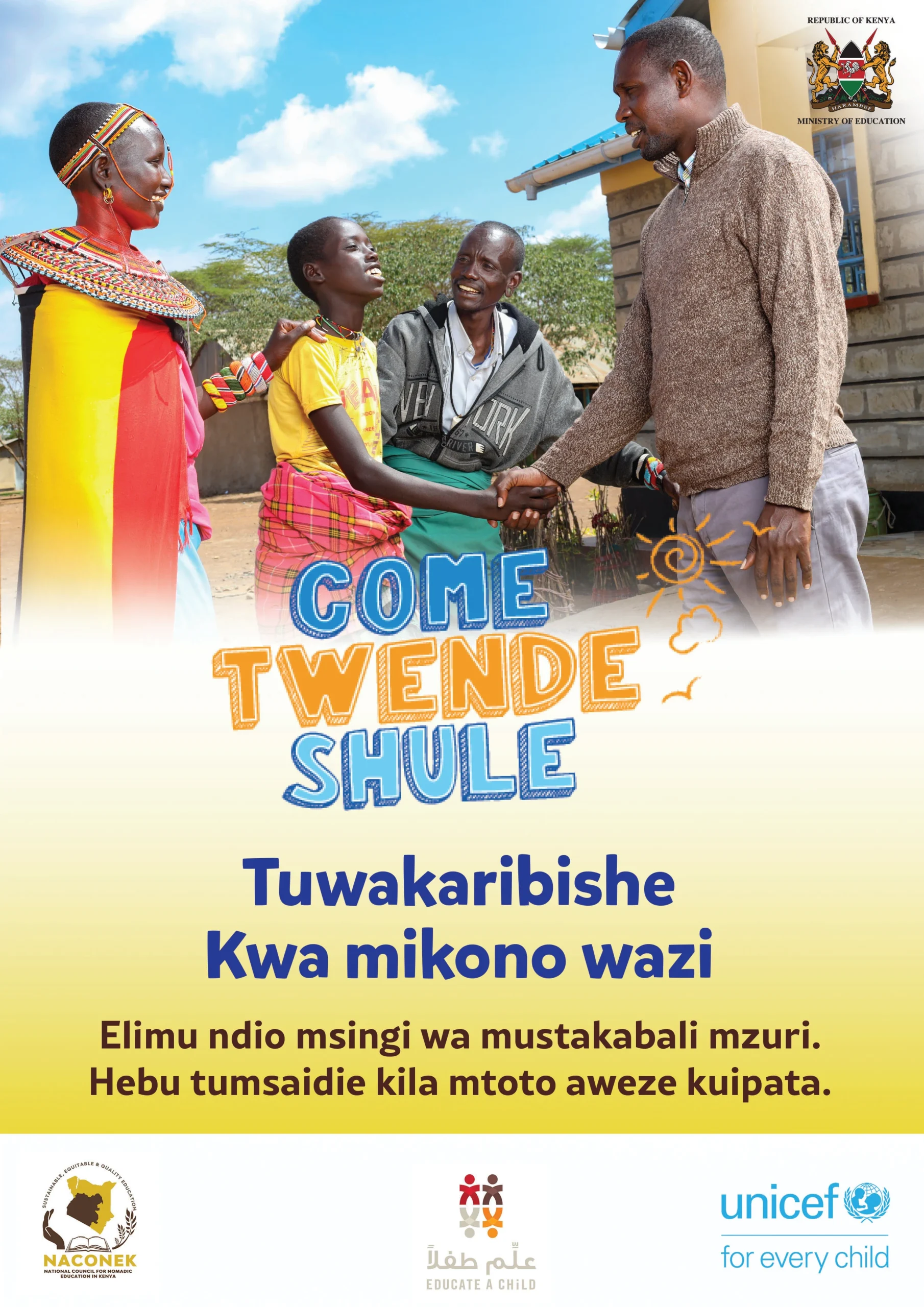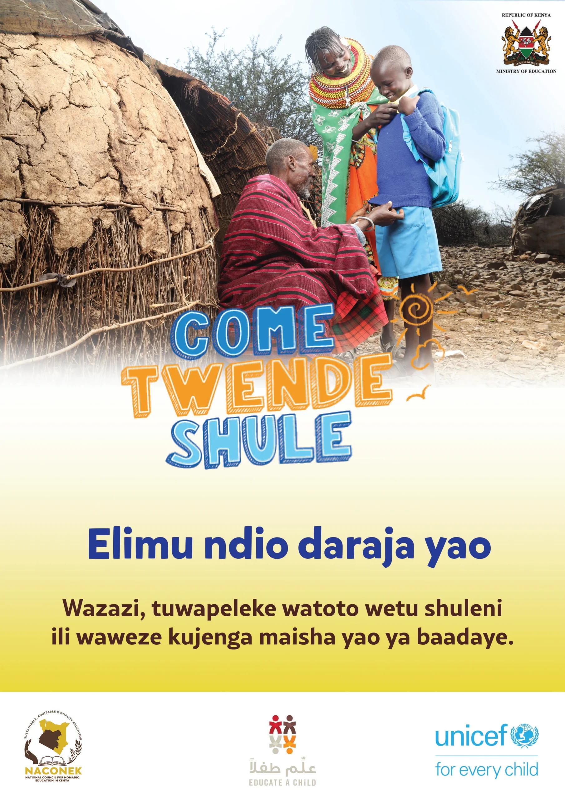UNICEF is supporting the Government of Kenya to bring and retain more children in school, with a focus on 16 priority counties (Baringo, Bungoma, Garissa, Isiolo, Kajiado, Kilifi, Kwale, Mandera, Marsabit, Narok, Samburu, Tana River, Turkana, Wajir and West Pokot, as well as Nairobi informal settlements) that cumulatively account for 90% of Out of School children in Kenya.