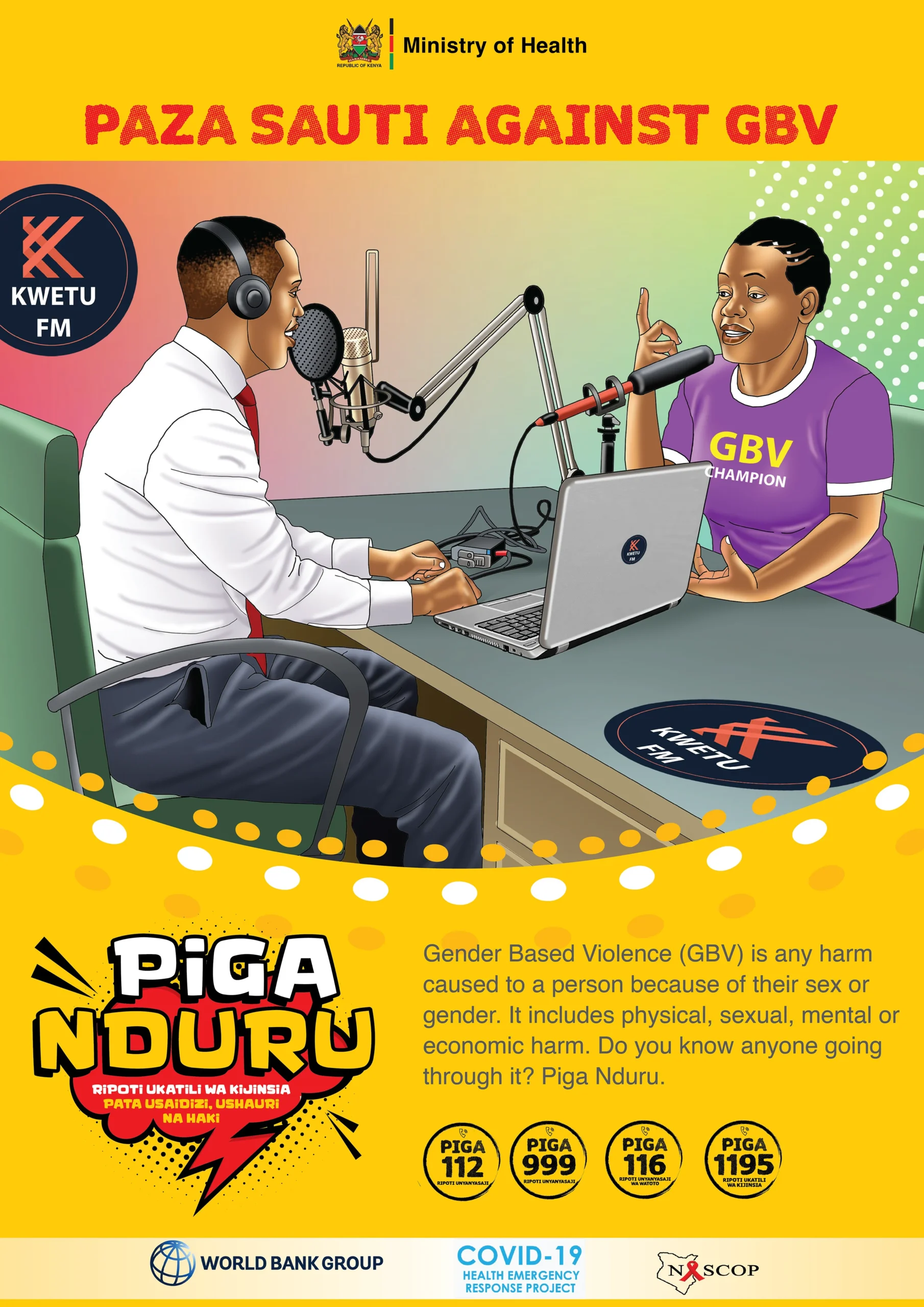 Scaling up of quantity and empathetic GBV care in Kenya faces numerous challenges especially at community level where there is delay in seeking of professional help and normalization of GBV. A specific area of intervention is to develop a Gender Based Violence sensitization package and Information Education and Communication materials for communities and Community Own Resource Persons (CORPs).