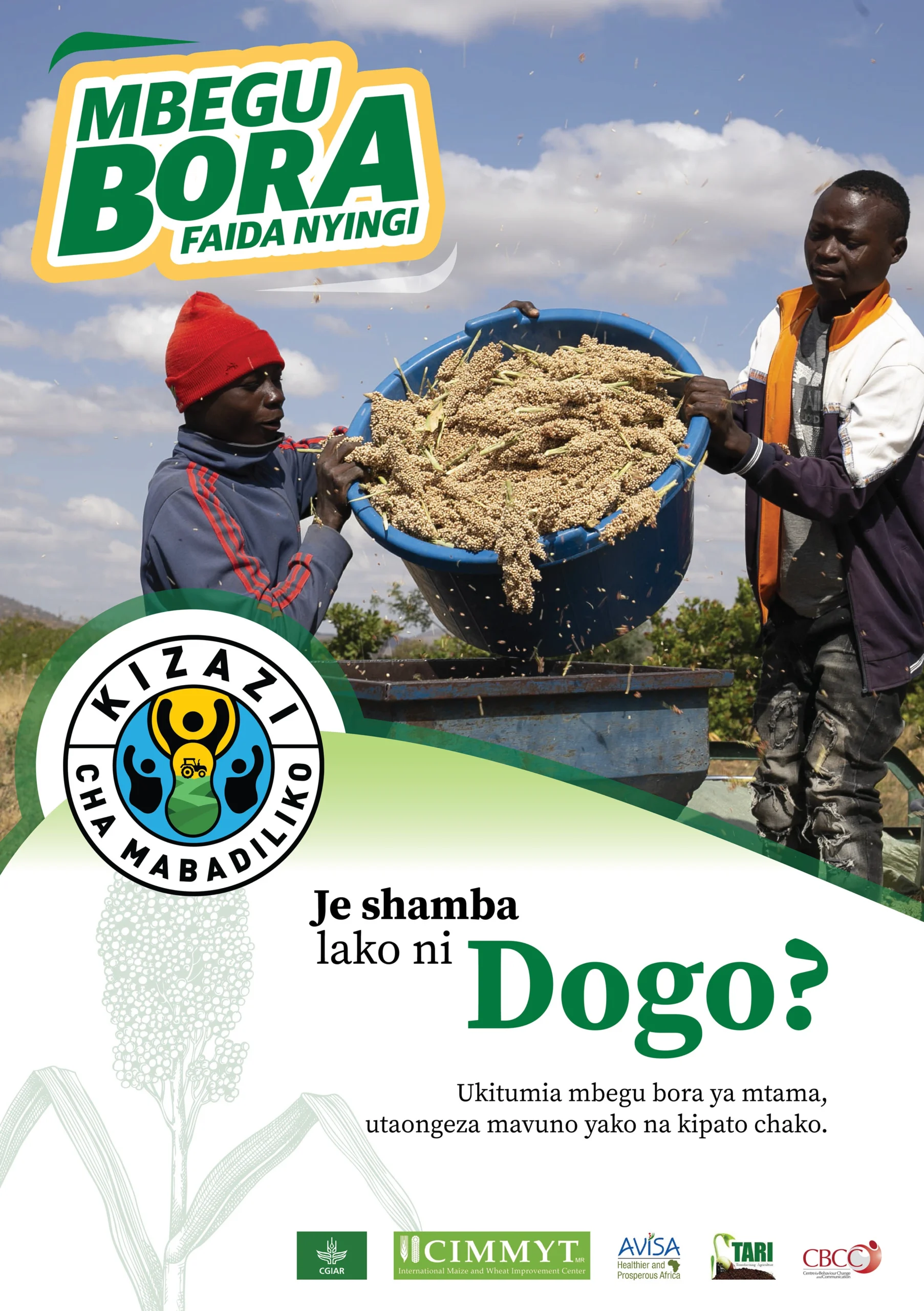 We are KIZAZI CHAMABADILIKO: a generation ready for change. Using Human-Centred Design and Behavioural Economics, we listened to young farmers, especially women and young mothers, in Tanzania’s drylands. Their agricultural journey is shaped by culture, norms, gender, and limited opportunity. Many youth are disconnected from agriculture, but school dropouts and young mothers remain farming or earning daily wages. These are our change-makers. Through the AVISA project, we promote modern, high-quality seed varieties that promise better yields and climate resilience. Our goal is to increase use of superior seed, expand early generation and certified seed access and create a strong handover to private sector actors, especially women and youth. The campaign is funded by Bill and Melinda Gates though CGIAR/CIMMYT and implemented by CBCC and Tanzania Agricultural Research Institute in Southern Tanzania.