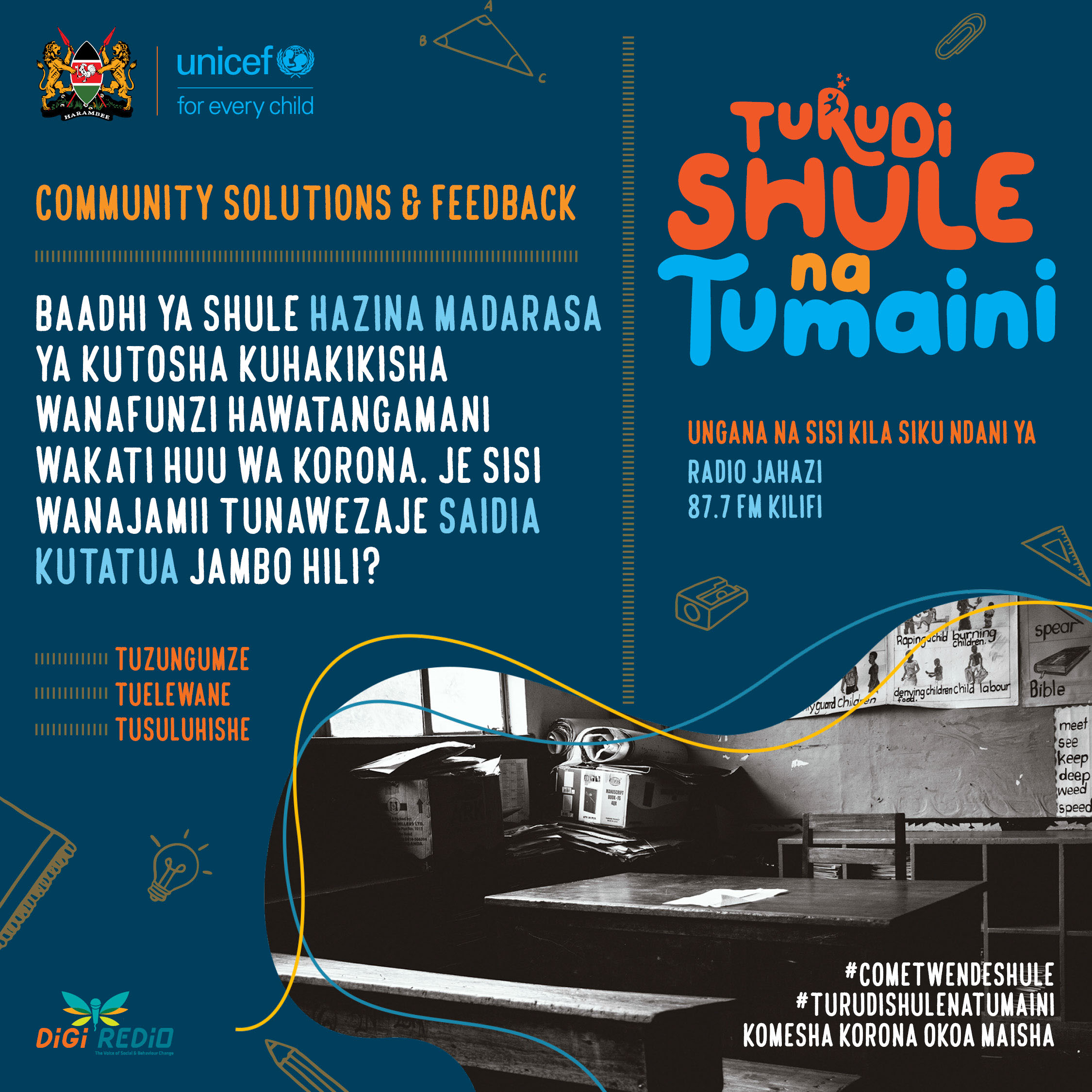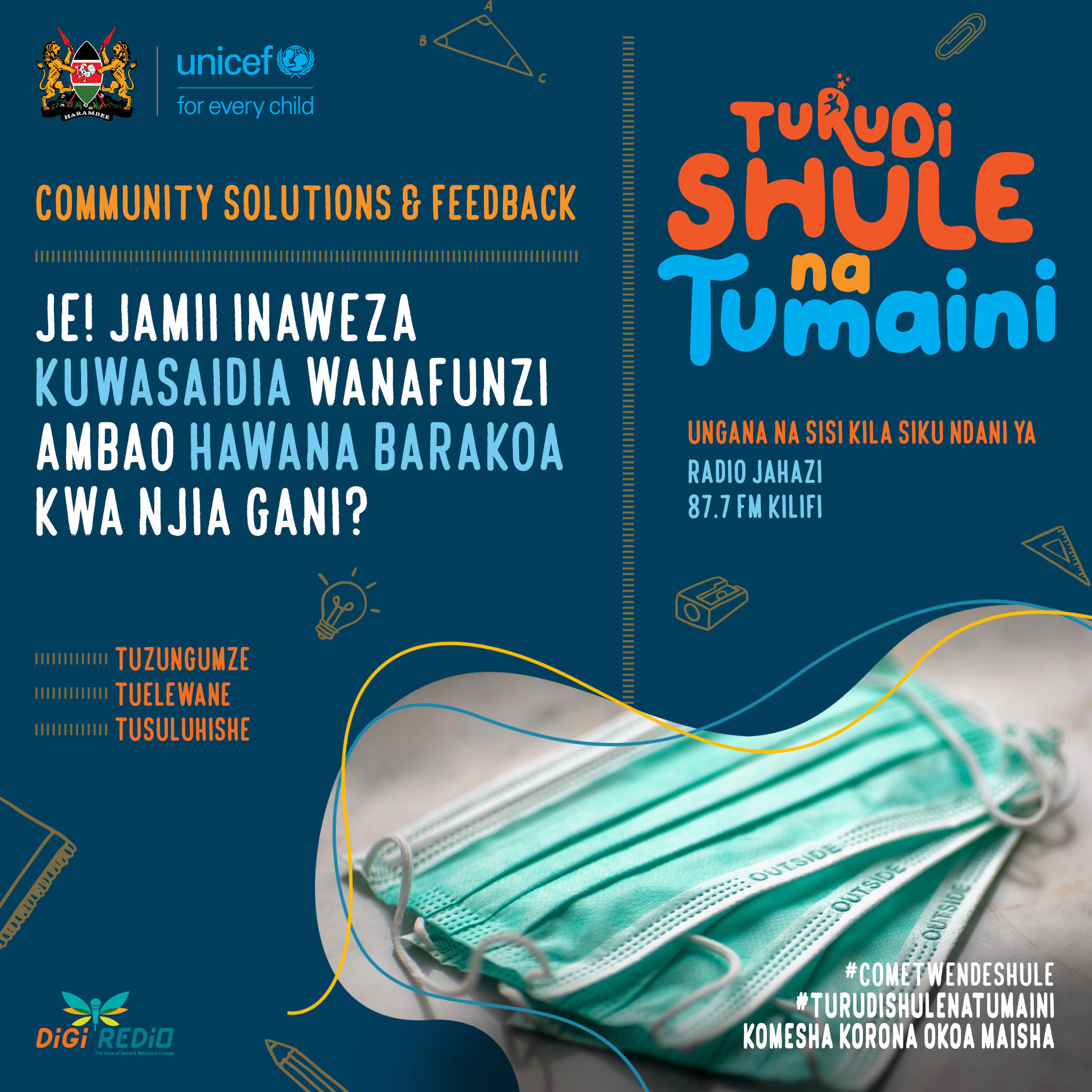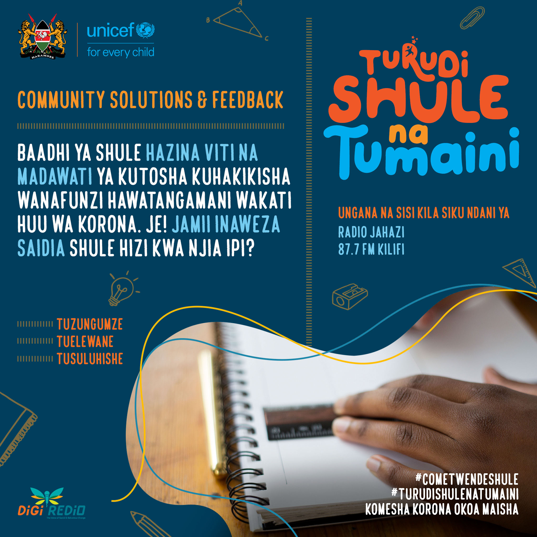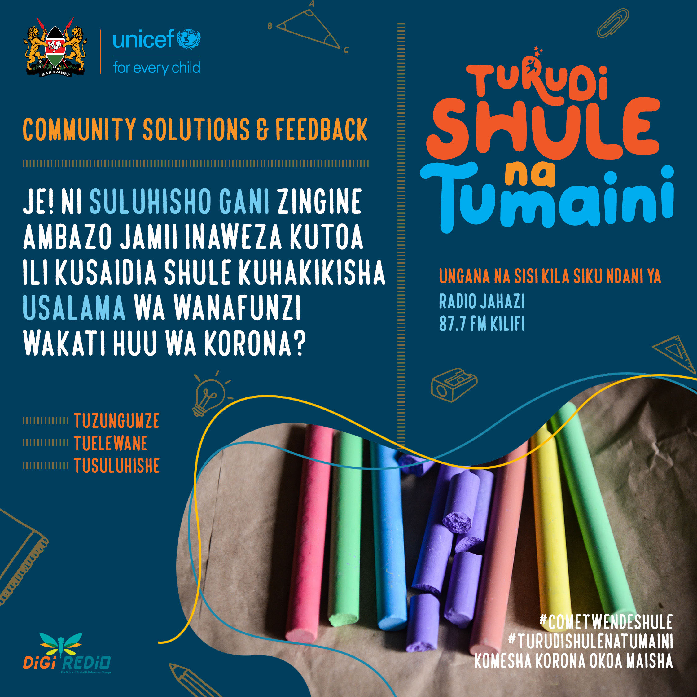 Turudi Shule na Tumaini is a 2 month campaign that aims at spreading hope to learners, parents and institutions of learning as schools reopen in January 2021 after a long break caused by the COVID-19 pandemic. Turudi shule na Tumaini is a phrase in Kiswahili meaning ‘Lets go back to school with hope.’